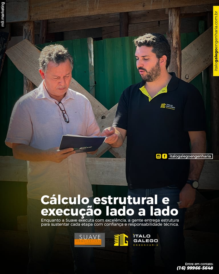Toda grande obra começa no projeto — e a estrutura precisa estar pensada nos mínimos detalhes. A IG Engenharia tem orgulho de ser a responsável pelos cálculos estruturais das obras da @suaveconstrutora, garantindo que cada projeto saia do papel com segurança, economia e performance. Unimos experiência em engenharia com execução de alto nível, em uma parceria que valoriza o técnico e o prático. Enquanto a Suave executa com excelência, a gente entrega estrutura para sustentar cada etapa com confiança e responsabilidade técnica. 🔗 Engenharia bem feita é aquela que sustenta. E juntos, sustentamos grandes resultados. 📞 IG Engenharia – (16) 99966-5648