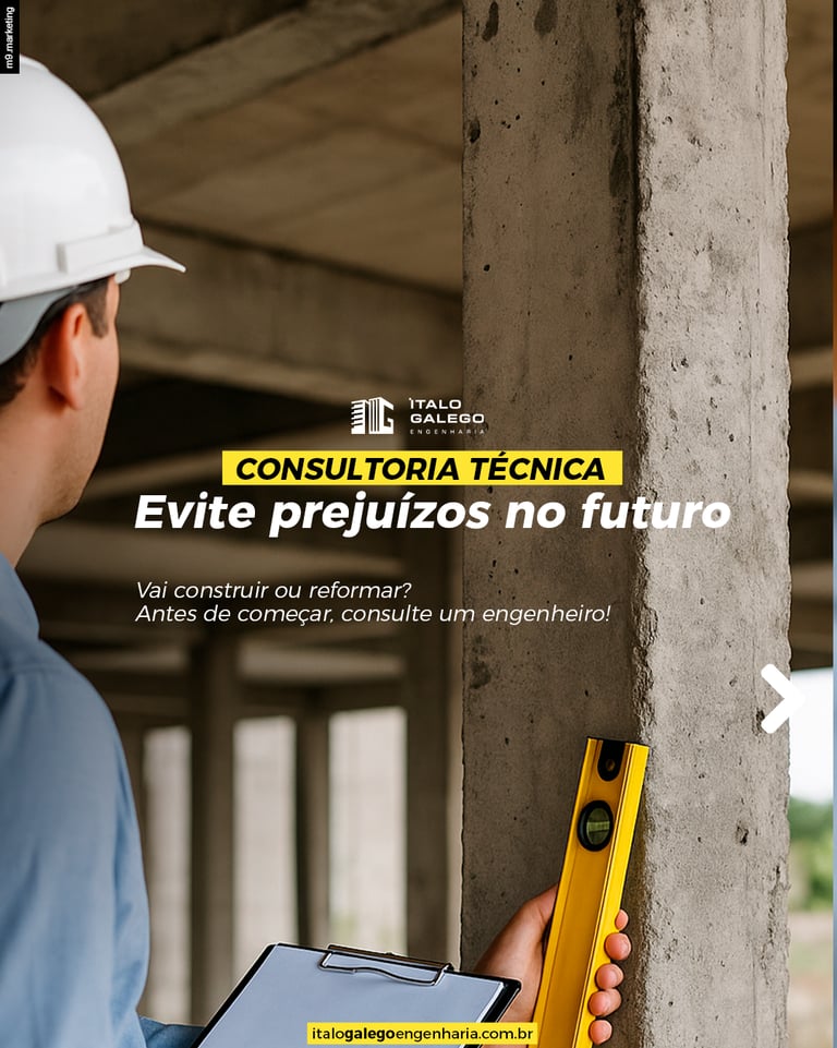 👷♂️ Consultoria técnica: decisões assertivas, obras seguras Antes de iniciar uma obra, reformar um espaço ou comprar um terreno, contar com a avaliação de um engenheiro civil é essencial para evitar problemas futuros. Na IG Engenharia, a consultoria técnica oferece um diagnóstico preciso das condições da estrutura, apontando falhas, sugerindo correções e prevenindo prejuízos. Além disso, a consultoria é um investimento estratégico para quem deseja construir de forma eficiente, sem desperdiçar recursos ou comprometer a qualidade da obra. Com a experiência de Ítalo Galego, analisamos cada detalhe do projeto, garantindo que a execução esteja alinhada às normas técnicas e às expectativas do cliente. 📐 Antes de tomar qualquer decisão na sua obra, fale com a IG Engenharia. Prevenir é sempre mais barato que remediar. 📲 Agende uma consultoria agora mesmo: (16) 99966-5648