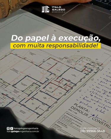 Toda obra começa com uma decisão estratégica: planejar antes de executar. O estudo da planta é uma das etapas mais importantes do processo construtivo, pois é nela que se definem fluxos, dimensões, compatibilizações e soluções estruturais que irão sustentar toda a edificação. Cada linha traçada representa cálculo, análise e responsabilidade. A leitura técnica do projeto permite antecipar interferências, ajustar sistemas e garantir que estrutura, arquitetura e instalações trabalhem em harmonia. É nesse momento que a engenharia transforma ideias em soluções viáveis, seguras e eficientes, reduzindo riscos e assegurando que a execução em campo ocorra com precisão e controle. Na IG Engenharia, o compromisso começa no projeto e se estende até a entrega final. Planejamento detalhado, acompanhamento rigoroso e decisões fundamentadas garantem obras bem executadas, com segurança, desempenho e durabilidade. 📞 (16) 99966-5648 🌐 italogalegoengenharia.com.br